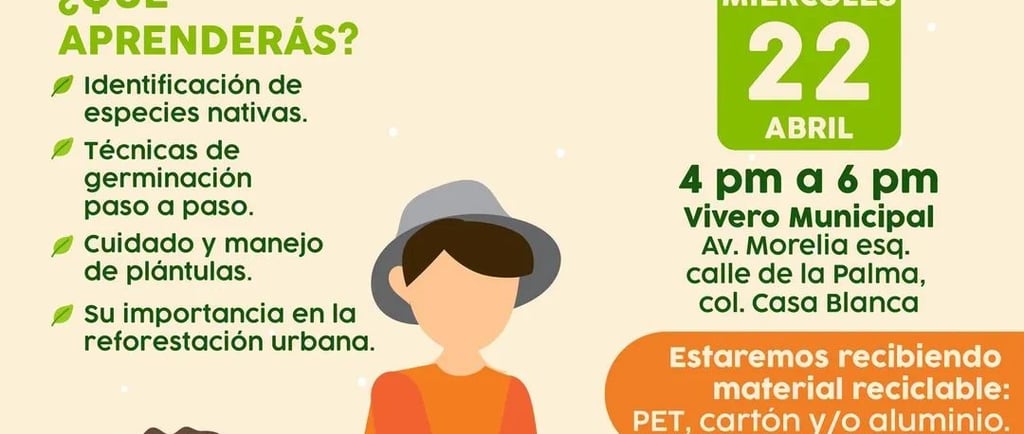 Entre los temas que aprenderán está identificación de especies nativas, técnicas de germinación paso a paso, cuidado y manejo de plántulas y su importancia en la reforestación urbana.